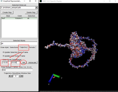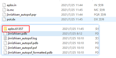 删除原来的分子,需要重新依次载入四个文件夹,分别为jinrizhisen_autopsf.pdb,jinrizhisen_autopsf.psf,jinrizhisen_autopsf.pqr,pot.dx