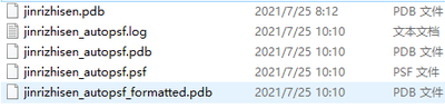 - 为jinrizhisen.PDB创建psf文件,psf文件是另一种存储蛋白质结构信息的文件,