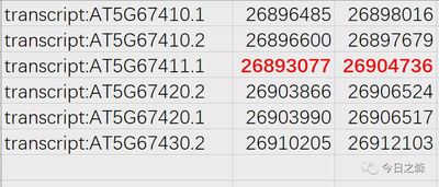那就取刚刚不overlap的区间。AT5G67411.1 26897680 26903865