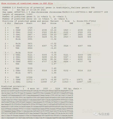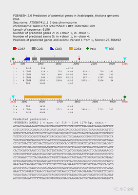 坑一: 刚才我们选取了基因本身的序列及上下游各5000bp,那么刚才预测得到的长1179 bp的基因是在AT5G67411.1基础上向5‘端延伸了几百bp呢?还是只是另外一个基因呢?