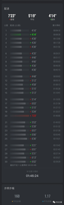 下面是五一劳动节30km跑的数据: