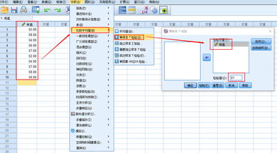 分析一组样本(10株转基因小麦株高)和一个已知总体(正常小麦株高平均为67cm)进行比较