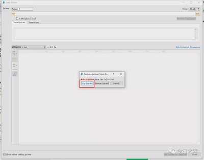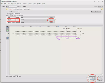到这一步发现有点问题,刚才随便选的两个酶切位点中的BamHI是不可用的,是因为我们的目的基因中含有BamHI酶切位点的序列。因此,通过检查后,将上面提到的BamHI替换为SalI。并对引物等进行了更新。由于重新更改和截图比较费劲,就不对上面的图片进行更改了。大家明白就行。