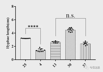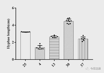 【进入正题】 数据背景:将Pyricularia grisea分别在4、13、25、30和37℃下培养4 d后测量菌落直径,以研究其最适生长温度,并分析各组之间有无显著性差异。数据测量结果如下: