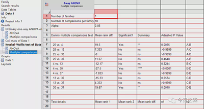 最后,再来看一下One-way ANOVA分析的另一种检验方法,Kruskal-Wallis test非参数检验。