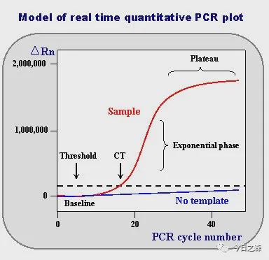 最后需要明确的是: Ct值的范围为15-35时为有效的。Ct值小于15,认为扩增在基线期范围内,未达到荧光阈值。理想情况下,Ct值与模板起始拷贝数的对数存在线性关系,也就是标准曲线。通过标准曲线,扩增效率为100%时,计算出基因单个拷贝数定量的Ct值在35左右,若大于35,理论上模板起始拷贝数小于1,可认为无意义。