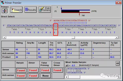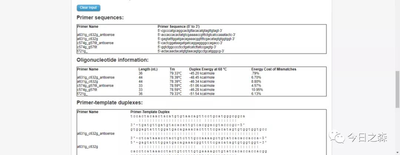 从结果可以看到引物的长度、Tm值及引物与模板相互匹配的序列