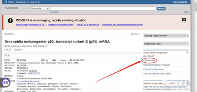 同样,我们选择P53这个基因。点击Pick Primer进入NCBI Primer blast界面。