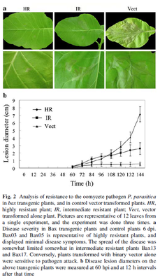 他们测试了来自水稻的苯丙氨酸解氨酶启动子(PALpro)调节bax表达的有效性。 PALpro是一种有压力诱导的条件启动子,包括创伤、TMV、bacteria、fungi等的攻击。