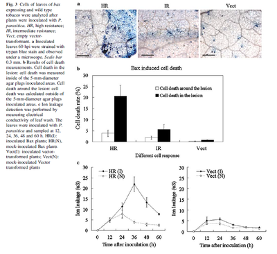 南京农业大学王源超教授团队于2008年发表的文章《Mammalian pro-apoptotic bax gene enhances tobacco resistance to pathogens》对BAX诱导的PCD进行了探究。